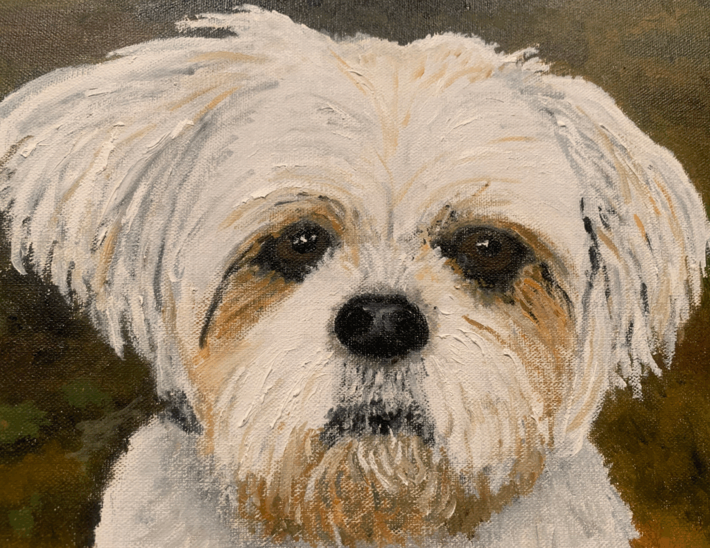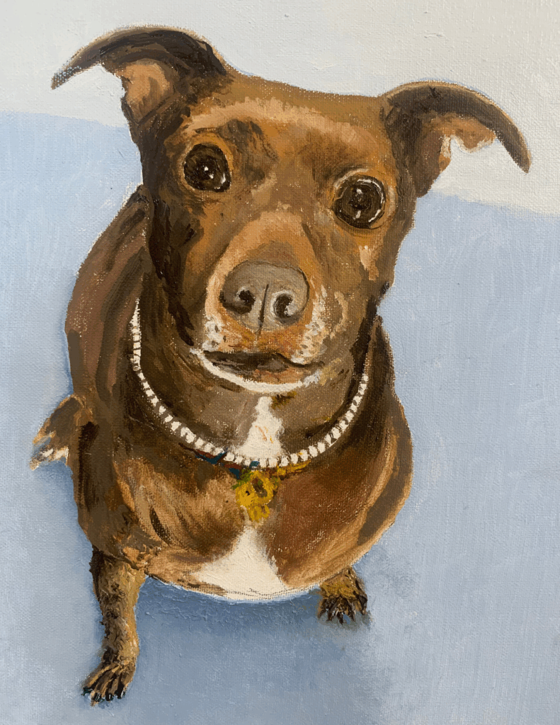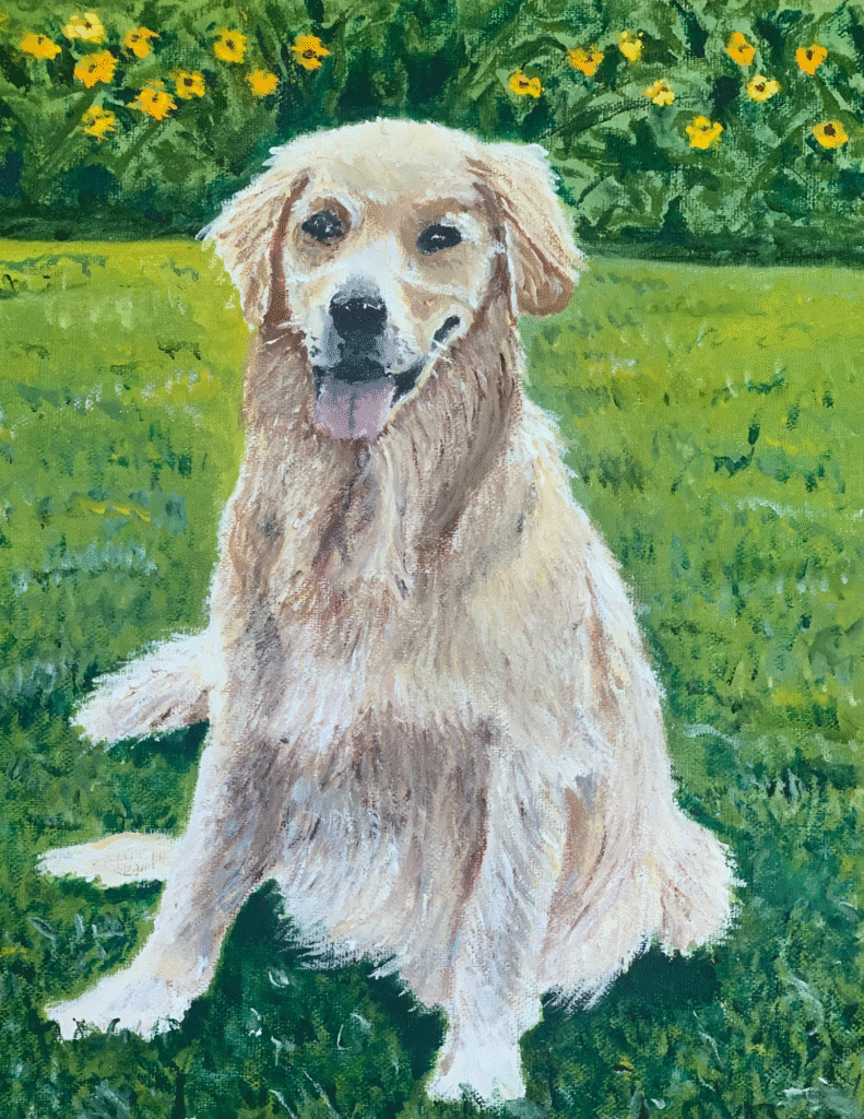 “I painted a few dog portraits for family members and shared them with friends. Suddenly I received several requests. I paint them from a photo that is provided. The quality of those photos ca impact the quality of the painting. The key is in the animal’s eyes, which provide the character of the animal and ultimately the painting. I get attached to these portraits and am sorry to see them leave.”